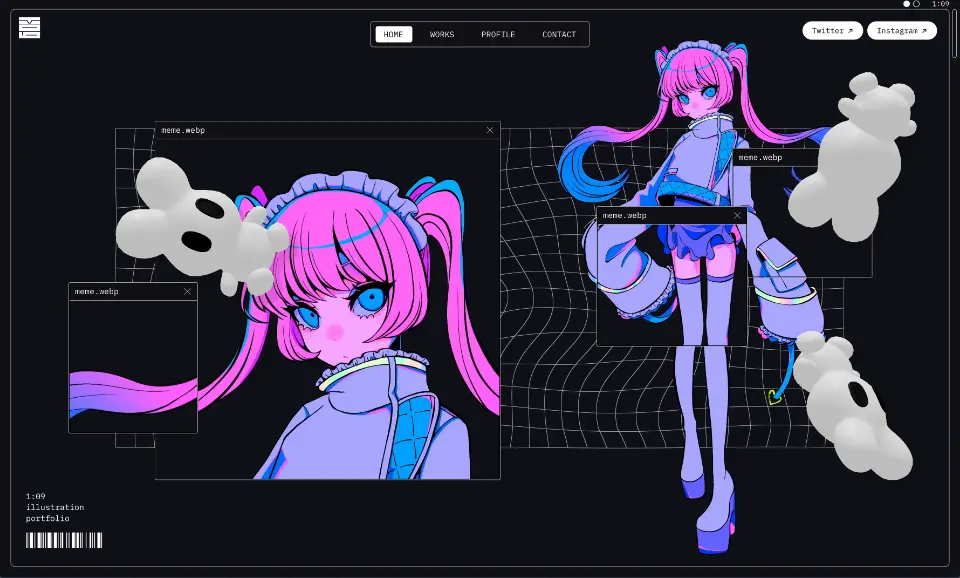 フリーのイラストレーターの1:09(いちき)です.東京を中心に活動,イベント出展多数.蛍光色とハッキリとした線のイラストを主に制作.ぬいぐるみやアパレル,グッズデザインなど幅広く活動しています.