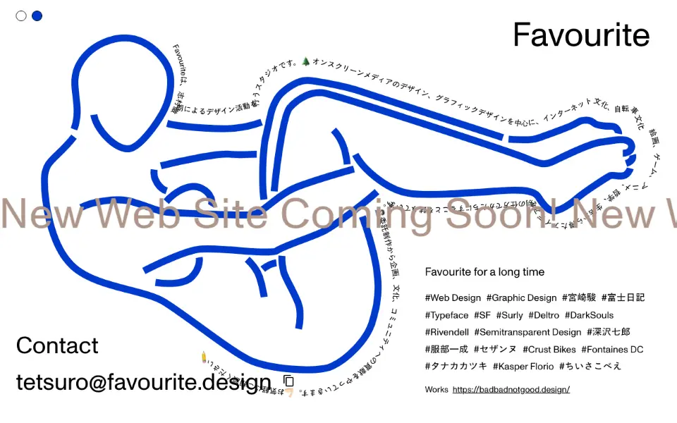 Favouriteは,志村徹朗によるデザイン活動を行うスタジオです.オンスクリーンメディアのデザイン,グラフィックデザインを中心に,インターネット文化,自転車文化,絵画,ゲーム,アニメ,哲学,生活から得たアイデアを別の仕方でかたちにすることを試みています.委託制作から企画,文化,コミュニティへの貢献をやっていきます.お気軽にご相談ください.