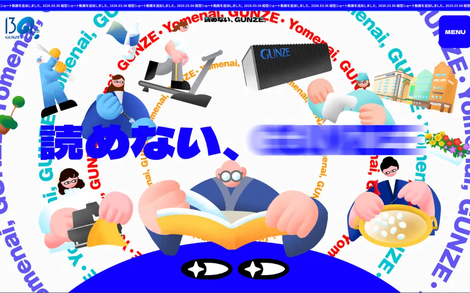 2026年に創業130周年を迎えるグンゼ株式会社の特設サイト。「読めない、GUNZE。」――それは、130年の節目に立つ私たちの、次の時代に向けて掲げる未来宣言です。